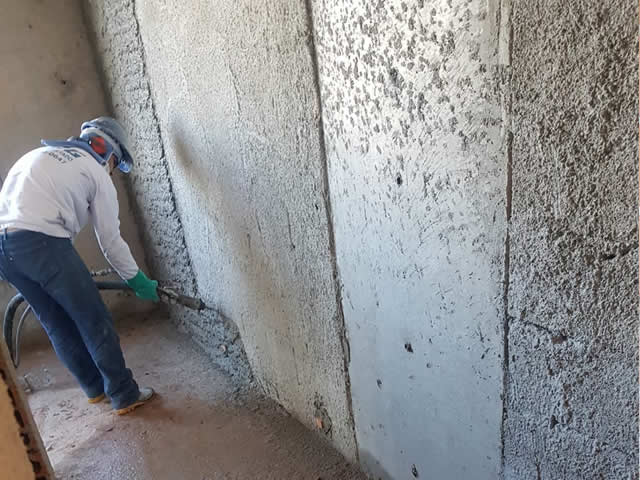 O reboco projetado, que consiste na técnica de rebocar paredes com argamassa projetada por máquina, vem sendo utilizado com maior frequência na construção civil. Garantindo maior rapidez na execução, melhor uniformidade e produtividade, as diversas vantagens apresentadas por este método fazem com que empresas optem pela substituição da mão de obra convencional pela máquina.